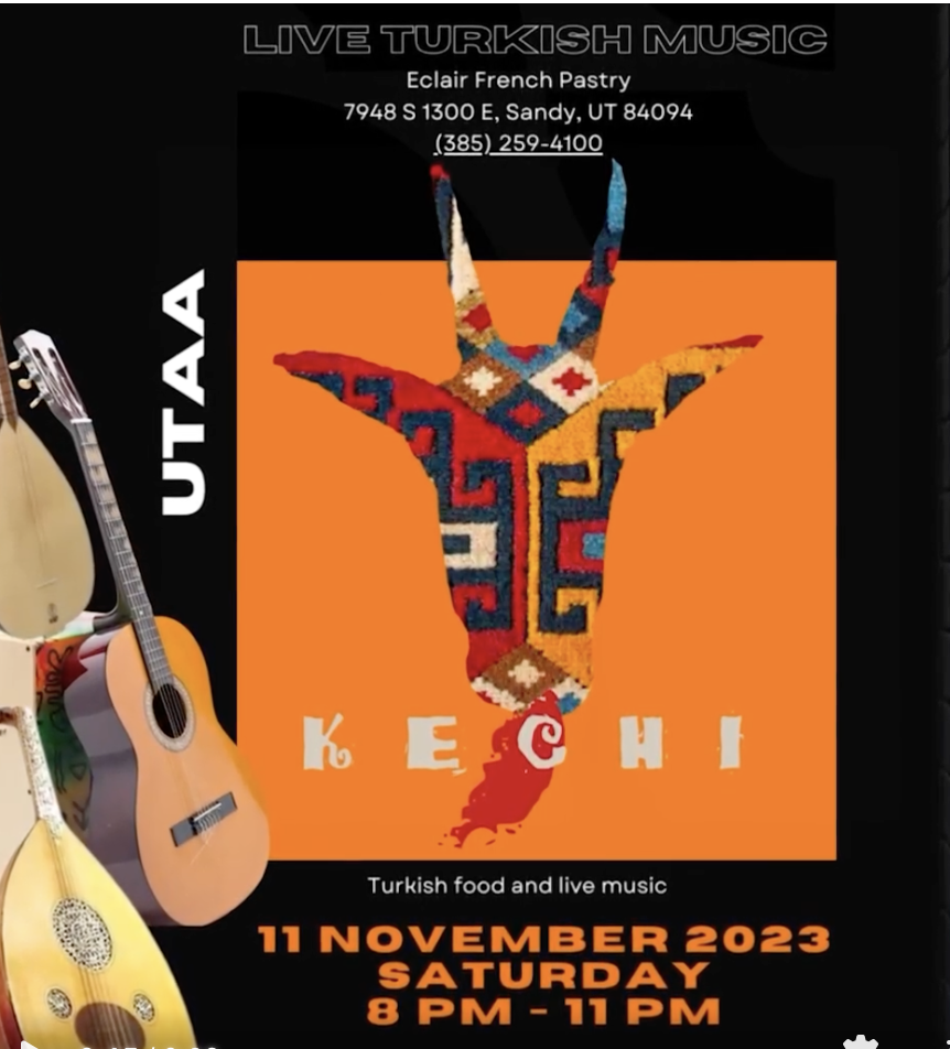 Wohooo! Kechi is performing again! Don’t miss it!! Come and enjoy authentic Turkish music and delicious pastry! November 11th, Saturday at Eclair!! 8-11 PM Location -- Kahve SLC